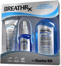 Starter Kit Put the Total Breath Management Solution together for patients with the New BreathRx Starter Kit. This conveniently sized and modestly priced take-home kit introduces patients to all the essential BreathRx system products they need to get the complete breath of health. Kit contains BreathRx Purifying Toothpaste (4-oz tube), BreathRx Gentle Tongue Scraper (2 pack), BreathRx Anti-Bacterial Tongue Spray (2-oz bottle), and BreathRx Anti-Bacterial Mouth Rinse (8-fl. Oz). |